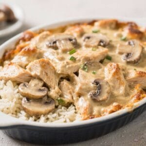This easy chicken and rice casserole with creamy mushroom sauce delivers comfort without the fuss. It’s flexible, forgiving, and built for weeknights, but it also feels special enough for company.