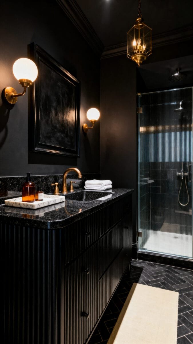 Keep towels crisp white for contrast. It’s dramatic, editorial, and very “keys-on-the-counter of a boutique hotel.”