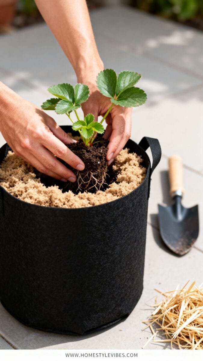 If you go with pots, pick something at least 10–12 inches wide and roughly the same deep per plant. Bigger works too. Strawberries don’t need a swimming pool, but they do want room for roots and steady moisture.