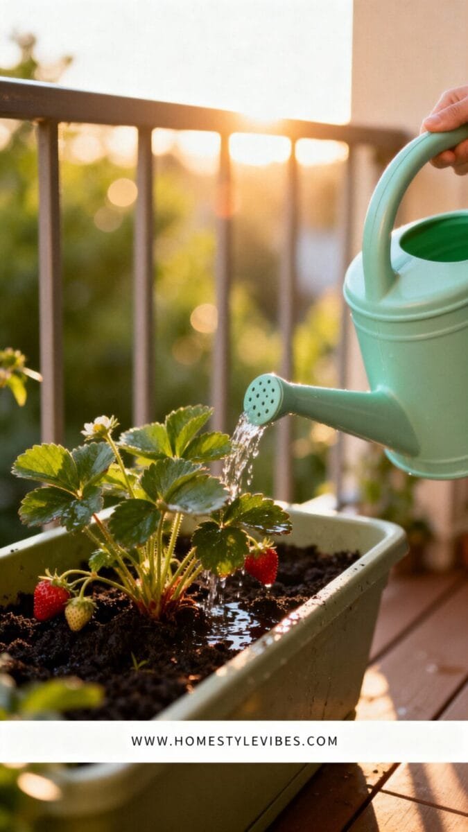If your space gets brutal afternoon heat, give them morning sun and a little shade later. I used to think strawberries could “handle it.” Actually… scratch that. What I meant is—strawberries can handle it, but you’ll handle the constant watering less happily.