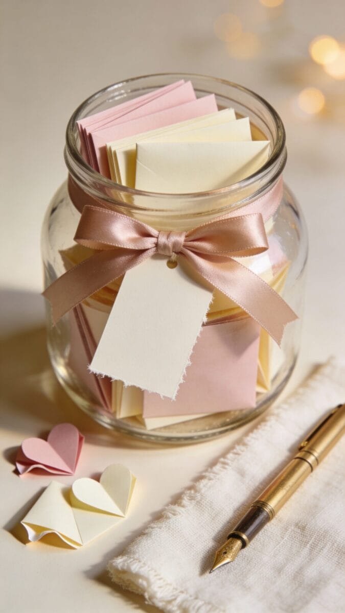 A love note jar feels personal because it’s literally your words, and next you’ll turn the same “tiny words” idea into something he can open one-by-one.