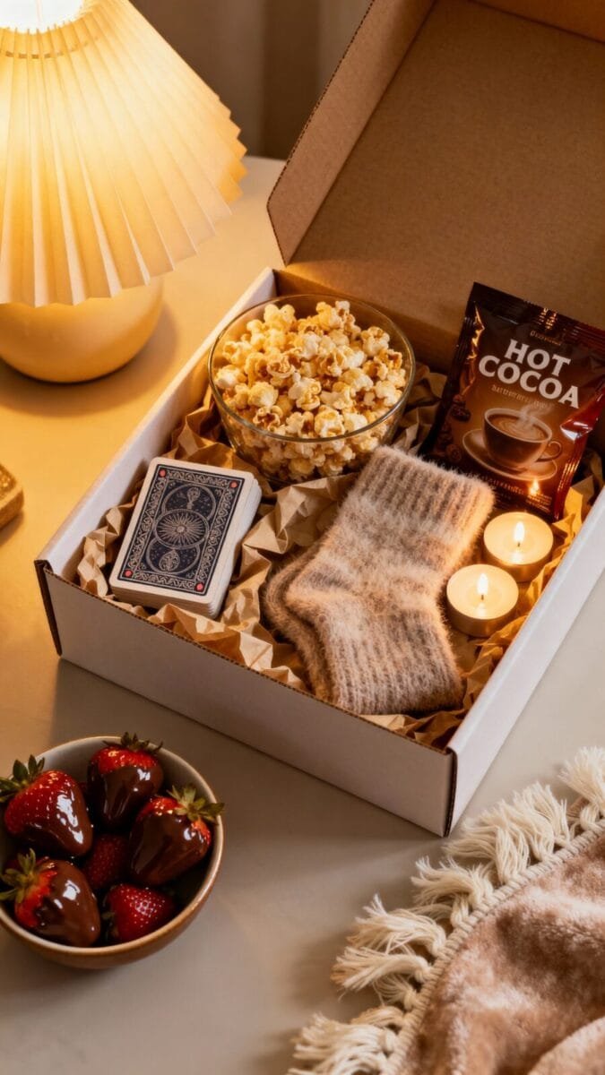 - Date-night-in box with cozy extras (romantic without leaving the couch)