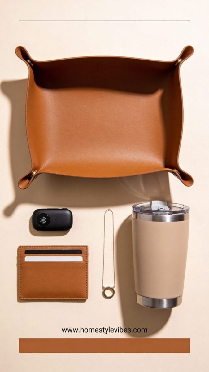 • Leather catchall tray: Nightstand or entryway organization that looks grown-up.